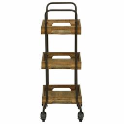 Amazon Brand – Stone & Beam Rustic Serving Bar Cart with Wheels, 22.83″W, Black, Natural and Dark Metal